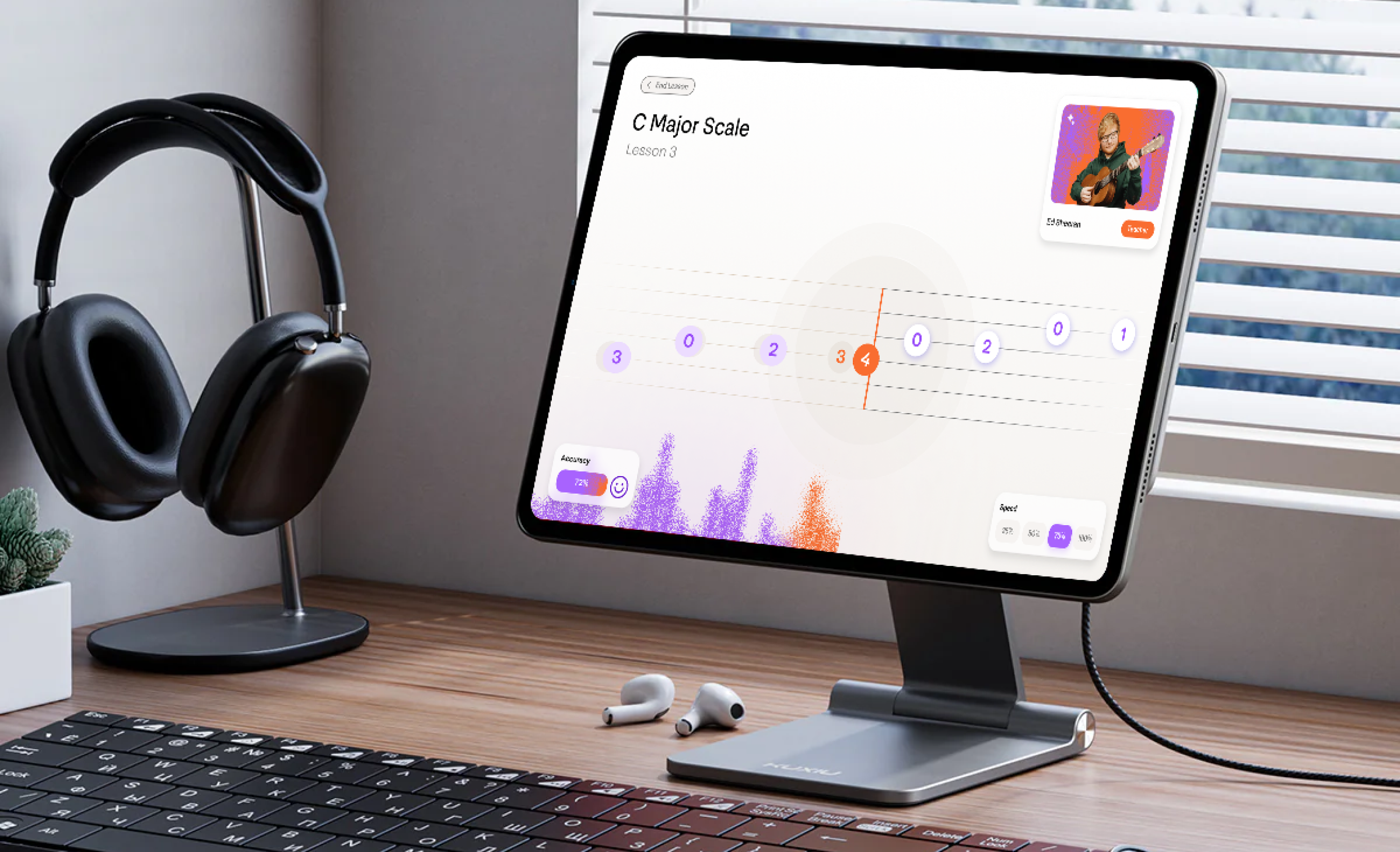 Encore is an AI-based learning platform that acts like a real guitar teacher by providing live feedback and feedback based on exercises. This makes practicing easier for beginners. Encore's playful approach ensures greater motivation and rapid learning progress.