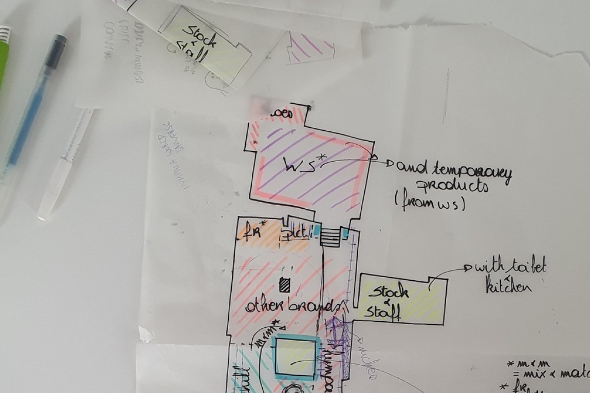 During the Summer School "Retail Design" at the University of Hasselt we were guided through a one-week-process to redesign a local clothing store. We created a store concept, decided for a look and feel, researched other stores for inspiration, drew bubble- and floor plans and designed different "add ons" for the store in smaller groups.